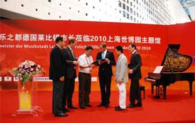 據(jù)悉,正值2010上海世博會(huì)盛事,“音樂(lè)之都”德國(guó)萊比錫市長(zhǎng)榮博翰JUNG先生攜德國(guó)國(guó)寶-博蘭斯勒鋼琴公司總裁博思進(jìn)博士等嘉賓在世博園內(nèi)共享“品古典音樂(lè),游上海世博”系列活動(dòng)。