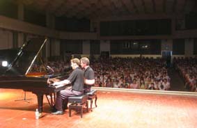 8月13-30日,以別具創(chuàng)意的表演手法演繹鋼琴的魅力與趣味,2010歐米勒孖寶“鋼琴瘋狂”中國巡演在上海、東營、重慶、大連、杭州、石家莊、沈陽等城市展開。由德國博蘭斯勒鋼琴基金會(huì)引入的德國頂尖級(jí)鋼琴家“歐米勒孖寶”(大寶、小寶)所到之處皆掀起了一股“鋼琴也瘋狂”的熱潮。歐米勒孖寶對(duì)音樂有著最本真的理解,隨性、自然、靈性,并以一種獨(dú)特的表演方式讓鋼琴充滿了無數(shù)的不可思議和趣味。讓鋼琴在小孩子的眼里不再只是枯燥而單調(diào)的“被學(xué)習(xí)”,而是變得充滿樂趣與吸引力!甚至打破固定的學(xué)習(xí)思維模式:哦!原來鋼琴還可以這樣來演奏!歐米勒孖寶的音樂會(huì)上,幾乎所有的小朋友們都爭著要上臺(tái)了和大寶、小寶同臺(tái)演出,不少小朋友還成為了歐米勒孖寶的忠實(shí)小Fans,開始喜歡鋼琴。