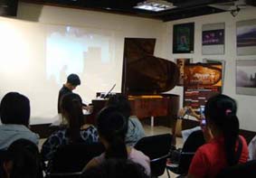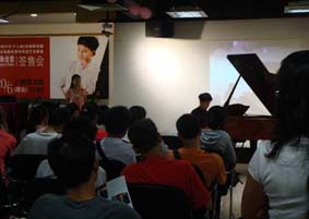 演奏中,觀眾都被跌宕優(yōu)美的旋律所吸引,現(xiàn)場非常安靜。演奏完畢,觀眾全體都熱烈鼓掌贊好。牛牛也高興地向大家介紹這兩首曲子是肖邦非常著名的練習(xí)曲《離別》與《革命》,并告訴現(xiàn)場觀眾這兩首曲子的在哪些地方體現(xiàn)出曲子的感情境界。這兩首曲子都收錄在了這張發(fā)行的碟中。