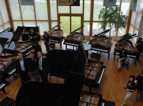 本次中國經(jīng)銷商大會(huì)地點(diǎn)設(shè)在萊比錫博蘭斯勒鋼琴工廠。博蘭斯勒總裁博思進(jìn)博士及生產(chǎn)總監(jiān)博立德先生首先帶領(lǐng)大家參觀工廠,并詳細(xì)向大家介紹了博蘭斯勒鋼琴的生產(chǎn)程序及選材的重要性。在參觀過程中,博思進(jìn)博士還向給眾位嘉賓介紹表示,博蘭斯勒工廠的工人大部分是家族制作鋼琴史在四代以上工人。這正好詮釋了博蘭斯勒作為德國保存至今的唯一一家由始至終都是家族生產(chǎn)的品牌的意義。