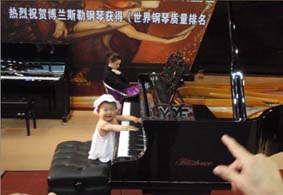 此次博蘭斯勒鋼琴展會現(xiàn)場展出了價值300多萬的博蘭斯勒155周年紀念版鋼琴。此臺鋼琴也可謂是博蘭斯勒鋼琴百年精湛工藝的一個縮影。這款特別的尤里烏斯·博蘭斯勒紀念版鋼琴,是公司成立155周年之際,為紀念尤里烏斯·博蘭斯勒對音樂的巨大貢獻,并為他給博蘭斯勒家族留下流傳百年的無價世襲遺產(chǎn)表示深深的崇敬而特地制作的。博蘭斯勒家族后代對先人所取得的偉大成就和貢獻的崇拜、感激之情都深深凝聚在這架鋼琴上。博蘭斯勒鋼琴重要獎項都銘刻在這架尤里烏斯.博蘭斯勒紀念版的徽章上,做工考究的譜架和琴腿盡顯鋼琴的優(yōu)雅典美,制作大師近乎苛刻的精細工藝,每一個細節(jié)都力求完美,使得這架鋼琴散發(fā)出令人著迷的藝術(shù)風采,吸引了眾多觀眾與之留念,反響熱烈,贊嘆喜愛之前溢于言表。