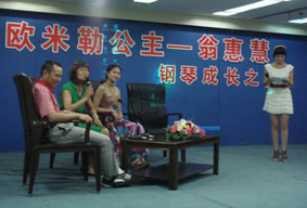 2009年7-8月,德國博蘭斯勒基金會、博蘭斯勒鋼琴(中國 )有限公司聯(lián)合推出“放飛理想,成就鋼琴之夢”的德中同行歐米 勒鋼琴公開賽冠軍得主、歐米勒公主翁惠慧成長之旅訪談錄。翁惠 慧是一位旅奧青年鋼琴家,2008年專程從奧地利飛回國參加德中 同 行-歐米勒鋼琴公開賽,并一舉奪得冠軍??赡艽蠹視覀円?樣認為歐米勒公主翁惠慧像趙胤胤、郎朗一樣在鋼琴方面是一個天 才。其實不然,翁惠慧是一位在學(xué)琴的過程中曾經(jīng)給老師“判過死 刑”的完全不適合學(xué)鋼琴的學(xué)生,更不用說是走專業(yè)道路、成為鋼 琴家了!因為翁惠慧的手指條件不好,如果走專業(yè)的道路,她是彈 不了大的曲目,所以幾乎所有的老師都建議她不要將鋼琴定為專業(yè) 的目標(biāo)。但,翁惠慧憑著自己的努力、恩師的辛勤培養(yǎng)才有了今天 的成功。本次訪談錄的主要分小時候的惠慧如何被父母安排去學(xué)鋼 琴、惠慧在走專業(yè)的道路的辛酸以及世界舞臺上惠慧的表現(xiàn)三個部 分來講述一個不同尋常的鋼琴家傳奇的成長歷程,讓現(xiàn)在正在學(xué)習(xí) 或是將要學(xué)習(xí)的鋼琴的琴童及其家長在學(xué)習(xí)或教育方面取得些寶貴 的經(jīng)驗,并通過這個訪談錄來激發(fā)琴童的學(xué)琴熱情。本次“放飛理 想 成就鋼琴之夢”的歐米勒公主翁惠惠慧訪談錄走過重慶、山東、 河南、廣東等站均引起當(dāng)?shù)厍偻瘜W(xué)琴的高潮。許多家長及小朋友紛 紛向歐米勒公主“取經(jīng)”:“怎么才能學(xué)好鋼琴?”“遇到難題該 怎么處理?”“如何處理好學(xué)琴與學(xué)習(xí)”等等,歐米勒公主都一一 給予解答并建議琴童們要勞逸結(jié)合。本次訪談錄也有幸邀請到翁惠 慧的媽媽與大家一起揭密惠慧小時候的一些趣事,并與家長們一起 分享教育心得。更有家長向翁媽媽請教:“孩子不愿練琴的時候, 該怎么辦?”翁媽媽也非常幽默的送給現(xiàn)場的琴童家長們八字真經(jīng) :“軟硬兼施、獎懲分明”。在重慶站及廣東站的訪談錄中,當(dāng)?shù)?承辦方在訪談嫦娥現(xiàn)場還請來了當(dāng)?shù)氐奶┒芳変撉俳淌谝约颁撉賲f(xié) 會會長與大家一起分享鋼琴教育問題,讓琴童及家長們收獲頗多, 也為家長教育琴童提供寶貴的經(jīng)驗!