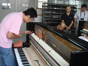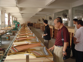 9月21日,受德國博蘭斯勒鋼琴(中國)有限公司的委托,國 家輕工業(yè)樂器質(zhì)量監(jiān)督檢測中心到德國博蘭斯勒(Blüthner)在 中國的歐米勒(Irmler)鋼琴生產(chǎn)基地-廣州市百濟(jì)實(shí)業(yè)有限公司 進(jìn)行鋼琴質(zhì)量檢測。國家輕工業(yè)樂器質(zhì)量監(jiān)督檢測中心的技術(shù)人員 從近百臺(tái)歐米勒及塞勒成品鋼琴中抽出兩臺(tái)鋼琴在生產(chǎn)車間進(jìn)行現(xiàn) 場質(zhì)量檢測,這兩臺(tái)鋼琴分別為190年紀(jì)念版歐米勒P125C鋼琴 及塞勒(Schiller)S125A鋼琴,檢測中心的技術(shù)人員依照 2002版國家標(biāo)準(zhǔn)使用先進(jìn)的檢測儀器對歐米勒鋼琴及塞勒鋼琴從 外觀、音準(zhǔn)、手感、觸鍵、調(diào)試等幾十項(xiàng)技術(shù)指標(biāo)進(jìn)行專業(yè)的檢測 ,并進(jìn)行演奏測試,百濟(jì)實(shí)業(yè)生產(chǎn)的歐米勒鋼琴及塞勒鋼琴已較高 的演奏品質(zhì)順利通過國家質(zhì)量檢測并得到專家們的充分肯定。專家 檢測組對百濟(jì)實(shí)業(yè)嚴(yán)格把關(guān)產(chǎn)品質(zhì)量,給予高度贊譽(yù)。