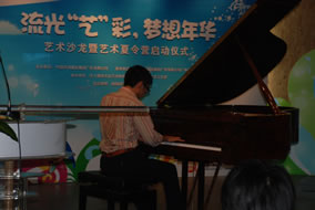 8月2日,由中國(guó)移動(dòng)通信集團(tuán)廣東有限公司主辦的,德國(guó)博 蘭斯勒全程支持的“流光‘藝’彩,夢(mèng)想年華”藝術(shù)沙龍暨藝術(shù)夏令 營(yíng)啟動(dòng)儀式在市少年宮隆重舉行。盡管天氣炎熱,但仍阻擋不了孩 子們虔誠(chéng)熱情的步伐。一大早少年宮演藝廳座無(wú)虛席,靜靜等候與 藝術(shù)大師面對(duì)面交流。