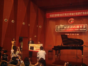 第四屆鼓浪嶼鋼琴節(jié)重要組成部分之一的首屆全國(guó)鋼琴考級(jí) 優(yōu)秀選手展演頒獎(jiǎng)音樂(lè)會(huì)24日上午10:00在鼓浪嶼音樂(lè)廳舉行, 手捧鮮花和獎(jiǎng)杯的各地青少年選手將他們年輕又嫻熟的鋼琴演奏技 藝與鼓浪嶼的舞臺(tái)輝映得熠熠生輝。這標(biāo)志著首屆全國(guó)鋼琴考級(jí)優(yōu) 秀選手展演比賽落下帷幕。本次閉幕式頒獎(jiǎng)音樂(lè)會(huì)上,優(yōu)秀選手及 各級(jí)金牌得主為贏得德國(guó)名琴歐米勒價(jià)值3.58萬(wàn)元卡羅( CARLO)而展開(kāi)了激烈的角逐。讓我們比較感動(dòng)的是來(lái)自地震災(zāi) 區(qū)—羅新的演奏,雙目失明的他在博蘭斯勒鋼琴上將其完美的一面 盡情的顯現(xiàn)出來(lái)。經(jīng)過(guò)緊張的現(xiàn)場(chǎng)比賽及評(píng)委們的評(píng)定,最終大獎(jiǎng) 被福建省音協(xié)選送的陳煒隆小朋友所奪。