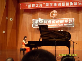 周宇博,一位優(yōu)秀的華人音樂(lè)家,2007年2月在德國(guó)以三項(xiàng) 考試均是最高分而獲得西歐國(guó)立音樂(lè)學(xué)院的最高等級(jí)學(xué)位---鋼琴 演奏家博士學(xué)位。近年來(lái),她一直活躍在世界舞臺(tái),這樣一位年輕 且優(yōu)秀的華人鋼琴家,于19日晚19.30與博蘭斯勒鋼琴第一次向 世界共同演繹了一場(chǎng)完美的鋼琴獨(dú)奏會(huì)。博蘭斯勒鋼琴將她那細(xì)膩 而溫柔的情感體現(xiàn)得更加淋漓盡致,贏來(lái)了陣陣掌聲!