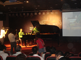 第四屆中國(深圳)國際文化產(chǎn)業(yè)博覽交易會(簡稱“文博會 ”)于5月16—19日在深圳舉行,本次文博會除深圳展覽中心主會 場以外還設(shè)立了多個(gè)分會場。文博會樂器分會場設(shè)在深圳上步南路 的深圳樂器城內(nèi)。文博會樂器分會場以“音樂,感動生活”為主 題,除展示、展銷包括德國國寶-博蘭斯勒等在內(nèi)的六十多種品牌 樂器產(chǎn)品及其他音樂文化相關(guān)產(chǎn)品外,還包括“歐米勒孖寶-鋼琴也 瘋狂音樂會”、“行業(yè)高峰論壇”、“頂級鋼琴賣會”、“大師班 鋼琴講座”、“古鋼琴參觀交流演奏會”等文化交流活動。