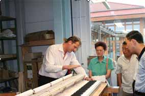6月18日據(jù)博蘭斯勒德國總公司報道:近日琴島廈門 鼓浪嶼代 表團(tuán)一行在鼓浪嶼萬石山風(fēng)景區(qū)管委會主任程建明的率領(lǐng)下到德國 萊比錫德國國寶博蘭斯勒總部訪問并洽談第四屆鼓浪嶼鋼琴比賽的 各種事宜,洽談完畢在博蘭斯勒總裁博思進(jìn)博士的帶領(lǐng)下程建明一 行參觀了博蘭斯勒鋼琴生產(chǎn)線,博思進(jìn)博士并為客人介紹德國國寶 博蘭斯勒鋼琴的手工制作過程,客人紛紛贊嘆:果然名不虛傳原來 鋼琴工藝是這樣復(fù)雜精細(xì)不愧為德國國寶。