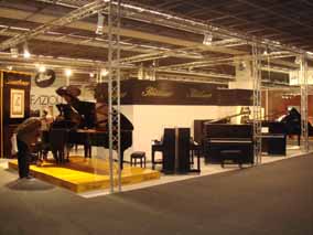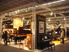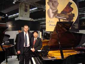 2007年3月28日-31日, 2007法蘭克福國際樂器展盛大開 幕?!癓ive for the music”-“音樂點燃生活” 是今年德國法蘭 克福 Musikmesse 的主題,作為全球最權(quán)威最專業(yè)的樂器展,吸 引了來自全球50多個國家的1500余家企業(yè)參展。德國博蘭斯勒鋼 琴公司依然以龐大豪華的陣容參展,公司總裁博思進(jìn)先生、中國公 司總經(jīng)理方揚(yáng)先生等高層領(lǐng)導(dǎo)悉數(shù)到場。展示有博蘭斯勒公司旗下 博蘭斯勒(Bluthner)、海斯勒(Haessler)、歐米勒( Irmler)、塞勒(Schiller )四個品牌。除了德國萊比錫原廠制造 的博蘭斯勒頂尖專業(yè)演奏三角鋼琴系列、海斯勒鋼琴、歐米勒鋼琴 ,還展示有博蘭斯勒鋼琴公司和匯豐樂器中國公司合作生產(chǎn)的歐米 勒、塞勒鋼琴。