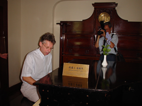 德國(guó)駐華使館文化參贊馮 · 馬丁也是一位鋼琴愛(ài)好者,看到 產(chǎn)于自己國(guó)家威廉時(shí)代的古鋼琴,喜悅之情溢于言表。索性坐到鋼 琴前找一找彈奏這國(guó)寶級(jí)古鋼琴 的感覺(jué)。
