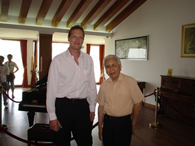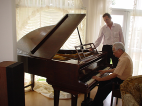 8月2日上午,應(yīng)胡友義先生的邀請,博蘭斯勒鋼琴公司總裁博思進先生訪問了胡友義先生位于鼓浪嶼的私宅。盡管胡友義先生常年居住在澳大利亞,他還是在鼓浪嶼特地保留有這套房子。令人驚訝的是,這棟房子里還珍藏著一臺制造于1911年的棕紅色博蘭斯勒三角鋼琴。胡友義先生介紹說,博蘭斯勒鋼琴音域?qū)拸V,音色溫暖,極富穿透力,他非常喜愛。他一共收藏有三臺博蘭斯勒古鋼琴。一臺捐贈給了鼓浪嶼鋼琴博物館,一臺珍藏在鼓浪嶼的家中,一臺珍藏在澳大利亞的家里。這三臺鋼琴盡管年代久遠,但黃金般的音色依然堪稱完美。