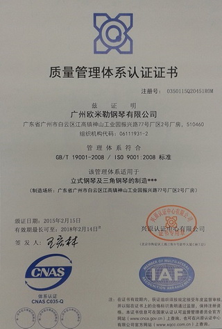 新年伊始,經(jīng)國(guó)際認(rèn)證機(jī)構(gòu)的嚴(yán)格審核,德國(guó)國(guó)寶-博蘭斯勒集團(tuán)旗下德國(guó)歐米勒鋼琴?gòu)V州生產(chǎn)基地率先順利通過(guò)了被稱為工業(yè)化時(shí)代管理方針的三大管理體系認(rèn)證審核——即ISO9001:2008質(zhì)量管理體系認(rèn)證;ISO14001:2004環(huán)境管理體系認(rèn)證和OHSAS18001:2007職業(yè)健康安全管理體系認(rèn)證,。成功獲得由中國(guó)質(zhì)量認(rèn)證中心頒發(fā)的認(rèn)證證書,這標(biāo)志著德國(guó)國(guó)寶-博蘭斯勒集團(tuán)旗下德國(guó)歐米勒鋼琴?gòu)V州生產(chǎn)基地“精細(xì)化、規(guī)范化、精確化、標(biāo)準(zhǔn)化”的德式嚴(yán)謹(jǐn)管理邁向了新的臺(tái)階!