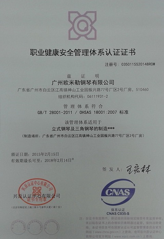 據(jù)了解,德國(guó)國(guó)寶-博蘭斯勒集團(tuán)旗下德國(guó)歐米勒鋼琴?gòu)V州生產(chǎn)基地也是國(guó)內(nèi)首家獲得OHSAS18001認(rèn)證的鋼琴制造基地,對(duì)此德國(guó)博蘭斯勒鋼琴中國(guó)區(qū)總經(jīng)理方陽(yáng)表示:“歐米勒鋼琴?gòu)倪M(jìn)入中國(guó)市場(chǎng)以來(lái),就一直把焦點(diǎn)定睛于生產(chǎn)制造最好的鋼琴,促進(jìn)整個(gè)行業(yè)的共同發(fā)展。近幾年來(lái),在德國(guó)總部與我們的共同努力下,歐米勒中國(guó)的生產(chǎn)制造技術(shù)不斷努力與德國(guó)制造相接軌,所制造的鋼琴在國(guó)內(nèi)外市場(chǎng)都受到了廣泛的認(rèn)可。與此同時(shí),我們也一直致力于提高環(huán)境控制能力,為廣大員工創(chuàng)造更完善良好的工作環(huán)境,同時(shí)設(shè)身處地關(guān)心員工的健康安全,從全方位提高工作質(zhì)量和產(chǎn)品質(zhì)量,提升整個(gè)鋼琴制造行業(yè)在國(guó)際市場(chǎng)上的認(rèn)可度?!?