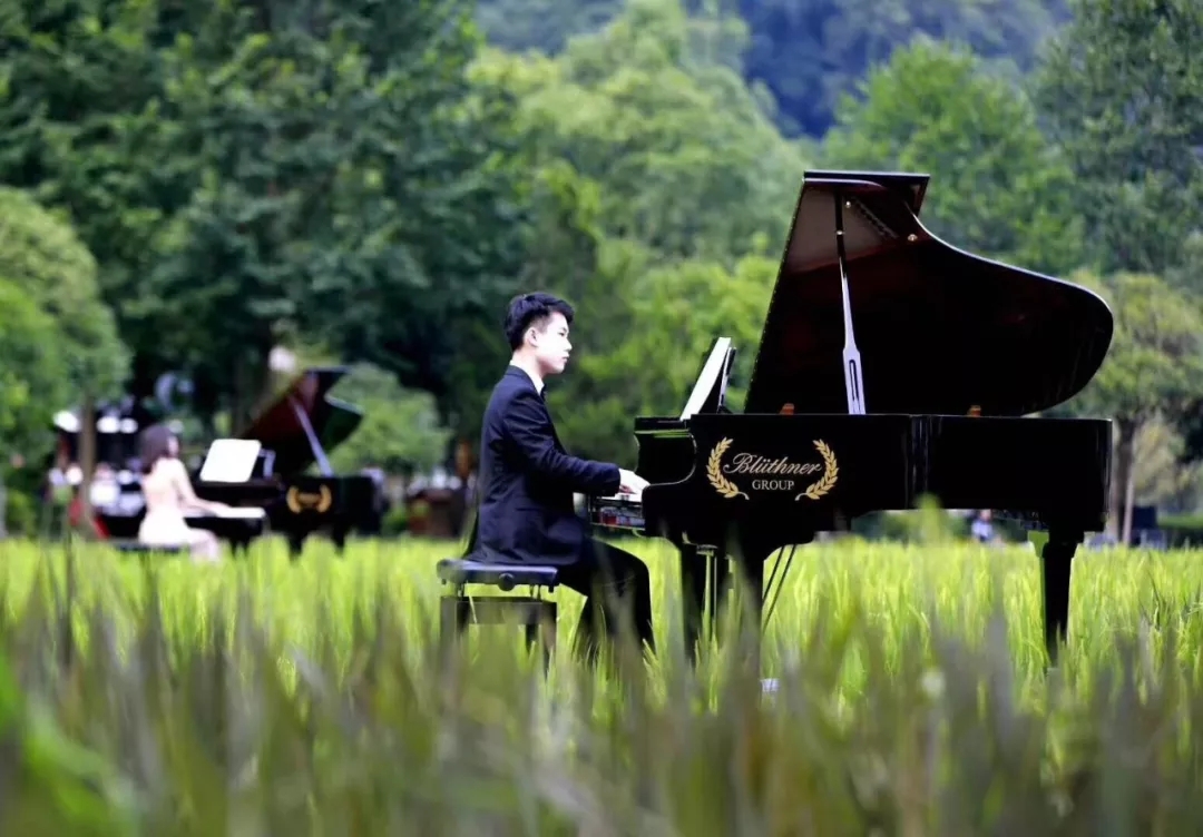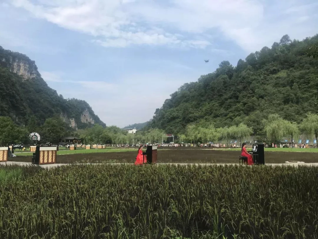 在中國(guó)著名鋼琴家元杰的磅礴詮釋下,博蘭斯勒的黃金音色在被陽(yáng)光照耀的天子山巔被奏響;與此同時(shí)在相隔15公里的黃龍洞景區(qū),在微風(fēng)拂過(guò)的哈利路亞音樂(lè)廳的綠茵屋頂上;在一片金黃盡收眼底的曲折綿延的稻田中,在蜻蜓喚醒的八角亭內(nèi),在溪水推動(dòng)的水車旁,這整片過(guò)百平方公里的天然舞臺(tái),118架博蘭斯勒家族鋼琴與演奏者,共同奏響這場(chǎng)世界獨(dú)有的峰林音樂(lè)會(huì)!