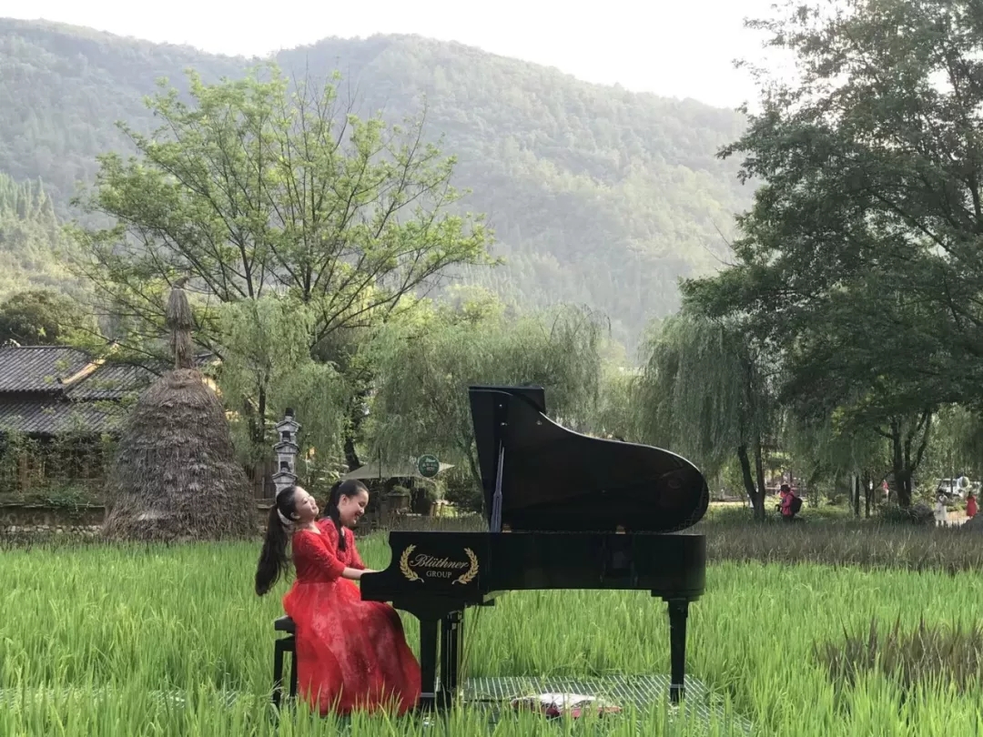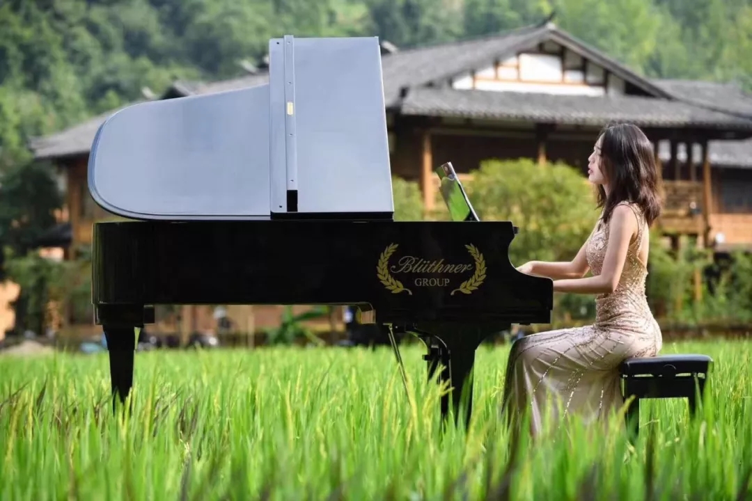 隨著《瀏陽(yáng)河》、《在希望的田野上》、《歡樂(lè)頌》等大家熟悉的旋律響起,時(shí)而磅礴氣勢(shì)、時(shí)而溫婉輕柔,博蘭斯勒的黃金音色響徹仙境般的山川田野之中,余音裊裊,久久回蕩……118架鋼琴發(fā)出的悅耳琴聲,伴隨著美麗的苗族姑娘的翩翩身姿,在希望的田野上奏響同一個(gè)美好愿望,為黃龍點(diǎn)睛!