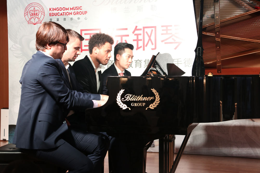 音皇音樂教育集團校長,著名青年鋼琴家李成偉先生; 音皇音樂教育集團聯(lián)合創(chuàng)始人,著名雙簧管演奏家,黃錚博士; 音皇音樂教育集團聯(lián)合創(chuàng)始人余戌東先生;德國博蘭斯勒集團總裁克里斯蒂安·博蘭斯勒博士;德國博蘭斯勒中國區(qū)總裁方陽出席了授牌儀式并在嘉賓們的祝福中,共同為“博蘭斯勒鋼琴學(xué)?!苯遗?!