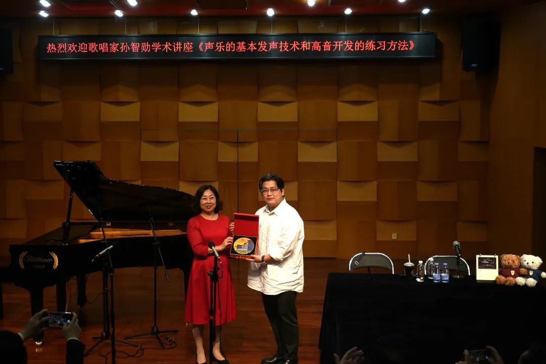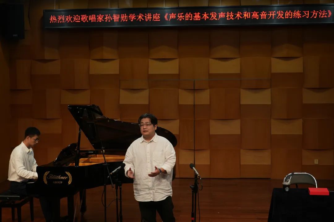 講座現(xiàn)場,孫智勛老師感到非常榮幸能夠和大家一起分享、共同思考有關(guān)聲樂的內(nèi)容。他的講述不僅僅是抽象的理論,而是通過歌聲生動地呈現(xiàn)出來,在場的觀眾紛紛表示在本次講座中受益匪淺?,F(xiàn)場還設(shè)有提問環(huán)節(jié),孫智勛老師對在場的觀眾提出的問題進(jìn)行了詳細(xì)的解答。